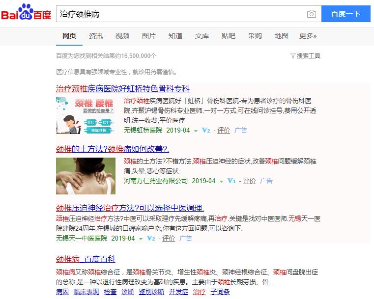 由此看来,百度仅仅是删除了“病名”关键词的竞价推广服务,其他模式的医疗广告依然层出不穷。
