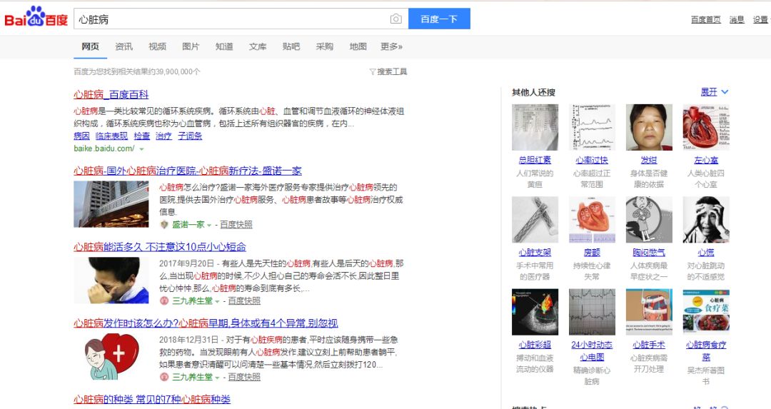去年5月,《新京报》报道百度又悄无声息地重启了医疗关键字的竞价排名。对医疗广告的竞价排名在移动端和PC端做了区分。以往出现在搜索结果里的医疗广告信息,基本都转到了移动端的搜索引擎。小编亲自试验了一下,发现移动端的搜索结果和PC端一致,说明百度已整改,但是页面下方的相关搜索还是会导向有广告的页面。